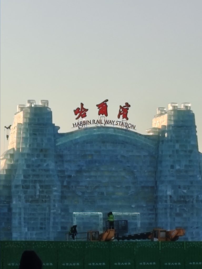 12月13号周六下午,我来到了哈尔滨冰雪大世界门口,现在哈尔滨冰雪大世界没有向游客开放,建筑工人们正在在会场上努力将冰雕雕刻好,争取让国外游客呈现一场冰雪盛宴。
